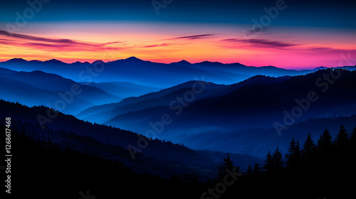Obraz premium Vibrant Sunset Over Blue Mountains
