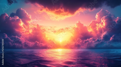 Fototapeta premium Vibrant sunset over calm ocean. (1)