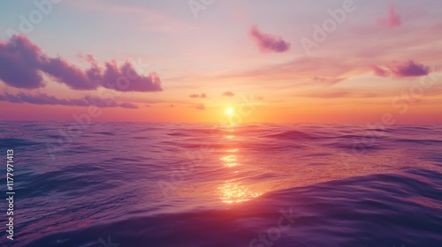 Naklejka premium Vibrant sunset over calm ocean water.