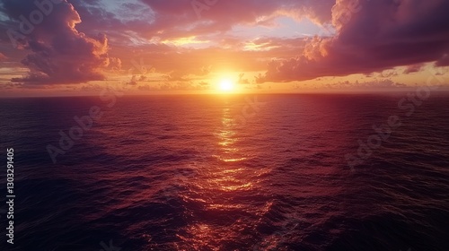 © Almahyra, Fototapeta premium Vibrant sunset over calm ocean waters.