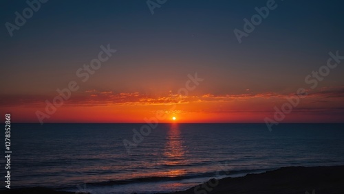 Fototapeta premium Vibrant sunset over calm ocean waters creating a serene nighttime seascape...