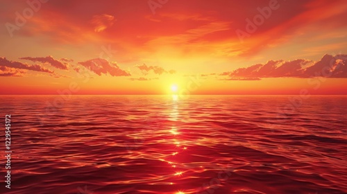 © Tina, Obraz premium Vibrant sunset over calm ocean waters reflecting colorful sky, serene atmosphere