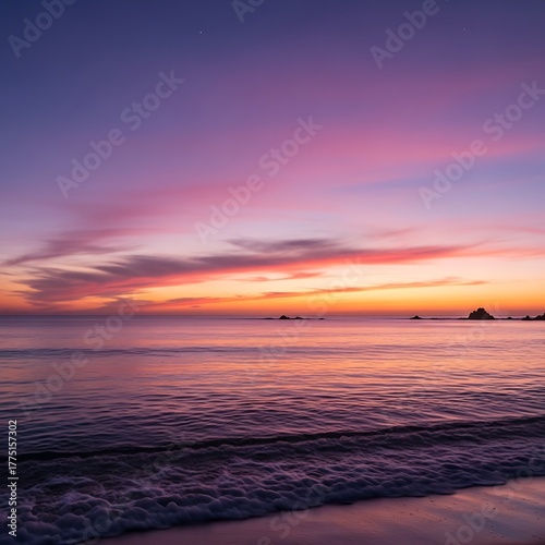 © alucard, Naklejka premium Vibrant Sunset Over Calm Ocean Waters with Colorful Sky.