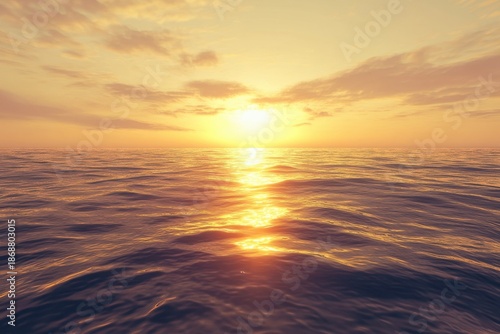 © YouraPechkin, Fototapeta premium Vibrant sunset over calm ocean waters with reflection of golden hues