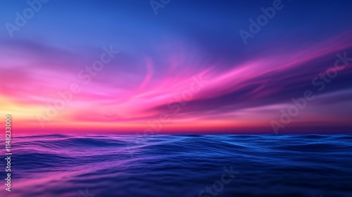 © Asep, Obraz premium Vibrant sunset over calm ocean waves.