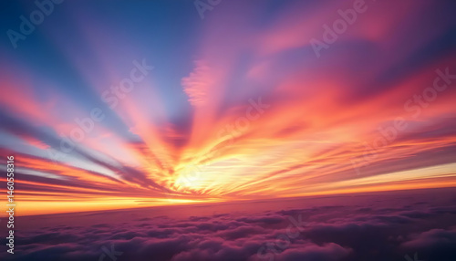 © Adi, Fototapeta premium Vibrant Sunset Over Clouds Illuminating Sky With Radiant Hues