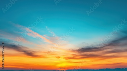 Fototapeta premium Vibrant Sunset Over Cloudy Horizon with Blue and Orange Sky