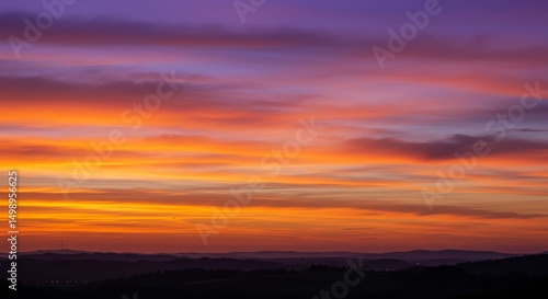 Obraz premium Vibrant Sunset Over Dark Landscape