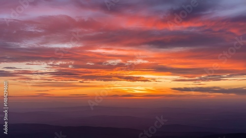 © RubinaAkter, Fototapeta premium Vibrant sunset over distant mountains with a colorful and dynamic sky