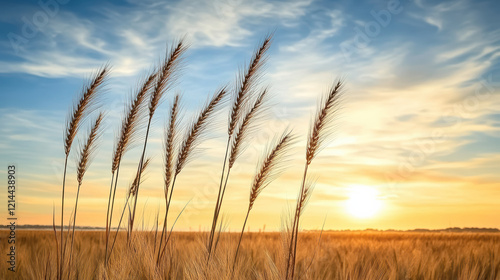 Fototapeta premium vibrant sunset over field of wheat swaying in breeze