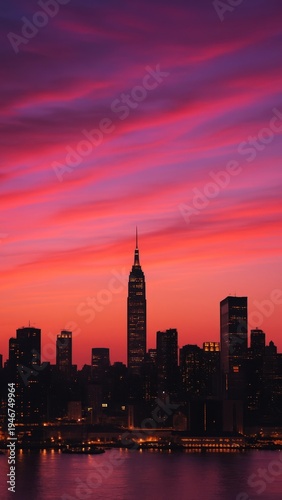 Fototapeta premium Vibrant sunset over iconic skyline.