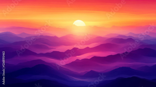 © ppearlgrey, Fototapeta premium vibrant sunset over layered mountains creates serene atmosphere