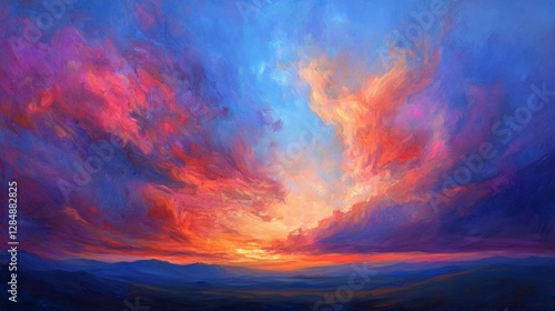 Fototapeta premium Vibrant Sunset Over Mountains with Colorful Cloud Formation