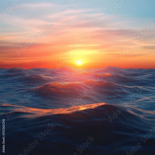 © Nucharee, Obraz premium Vibrant sunset over ocean waves.