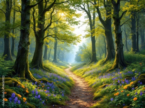 © Creative_trends_2025, Fototapeta premium Vibrant Sunset Over Serene Lake with Mountain Backdrop