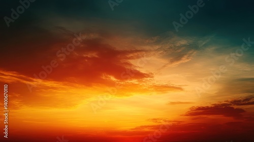 Fototapeta premium Vibrant sunset over serene landscape with colorful clouds