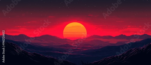 Fototapeta premium Vibrant sunset over serene mountain range.