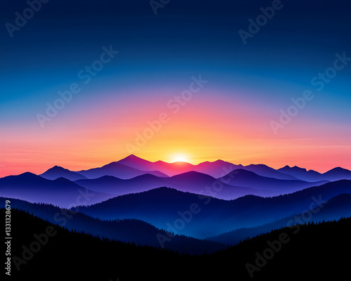 © CHURIN, Fototapeta premium Vibrant sunset over silhouetted mountain range