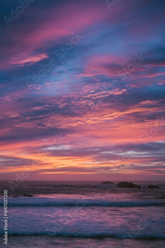 © Wida, Obraz premium Vibrant sunset over the ocean with dramatic clouds.