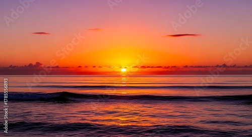 © hitam, Naklejka premium Vibrant Sunset Over the Ocean with Gentle Waves.
