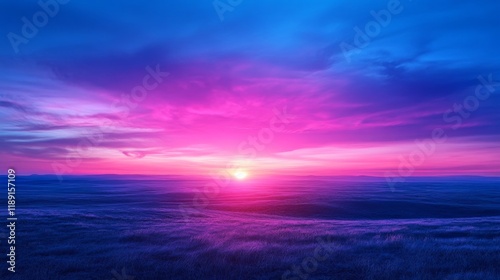 © Sandu, Obraz premium Vibrant Sunset Over Tranquil Landscape
