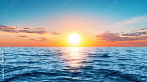 Obraz premium Vibrant sunset over tranquil ocean waters, reflecting warm colors in a serene...