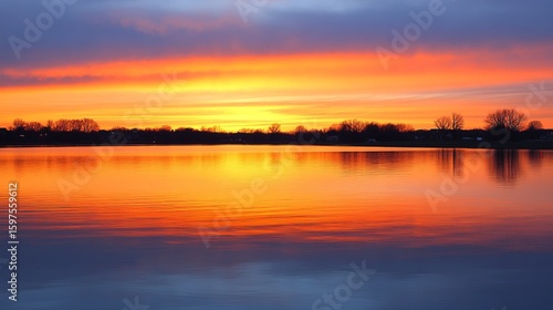Fototapeta premium Vibrant sunset reflecting on still lake