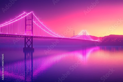Fototapeta premium Vibrant Sunset Reflection of a Bridge in Shades of Pink and Purple