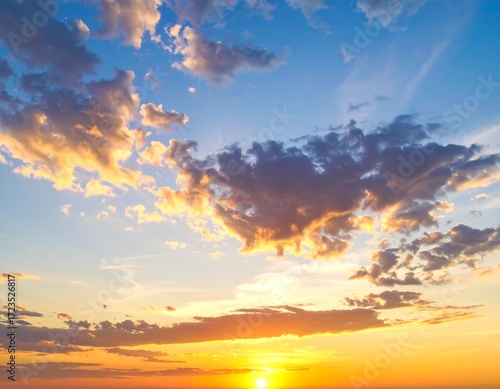 © sun, Obraz premium Vibrant sunset sky filled with clouds