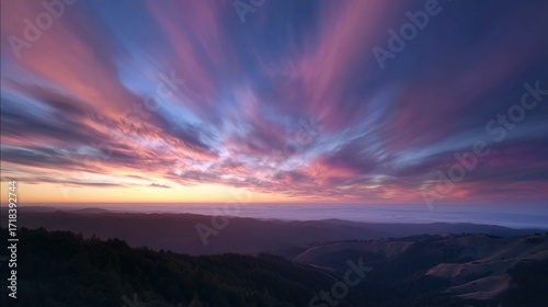 Fototapeta premium Vibrant sunset sky over mountain landscape colorful cloudscape background