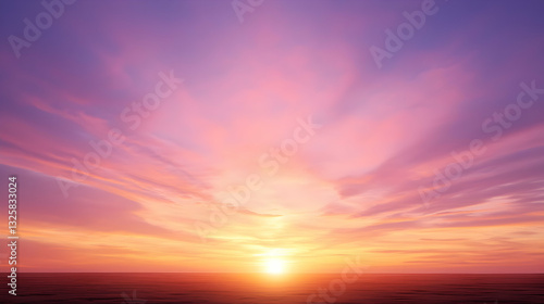 © PYP STOCK, Fototapeta premium Vibrant Sunset Sky Over Plains With Pink And Purple Clouds Surrounding The Bright Sun