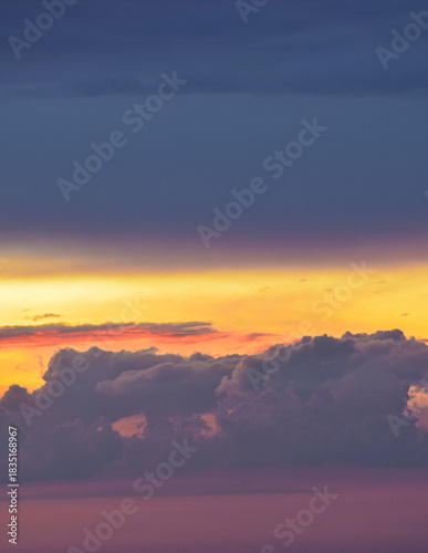 © vericafoto, Obraz premium Vibrant sunset sky spreading warm, magical hues across drifting afternoon clouds