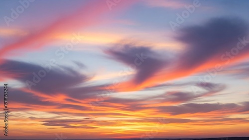 Fototapeta premium Vibrant sunset sky with dynamic cloud formations and warm color gradients