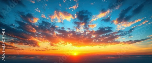 © Adi, Obraz premium Vibrant Sunset Sky with Orange and Blue Clouds