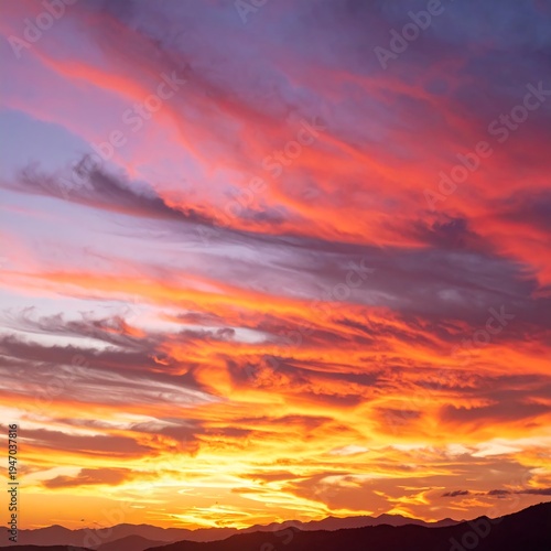© Bedesss, Fototapeta premium Vibrant Sunset Sky with Orange Clouds.
