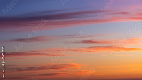 Obraz premium Vibrant sunset sky with wispy clouds painting the horizon in warm hues