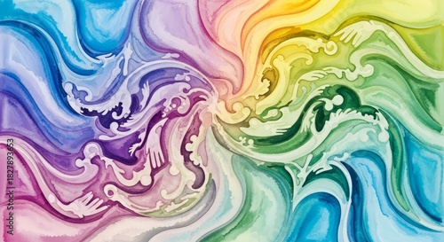 © Shawon, Fototapeta premium Vibrant Swirling Abstract Art with Rainbow Colors and Ornate Details.