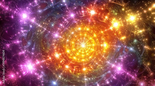 © Andi, Naklejka premium Vibrant swirling nebula with radiant stars, creating a cosmic tunnel effect