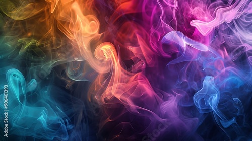 Fototapeta premium Vibrant swirling patterns of colored smoke blending seamlessly against a dark...