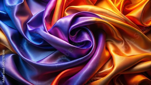 Obraz premium Vibrant Swirling Silk Fabric Art: Purple, Orange, Blue Textile Design