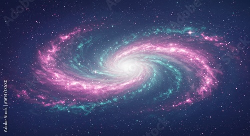 Obraz premium Vibrant swirling spiral galaxy with a bright core and cosmic dust against a...