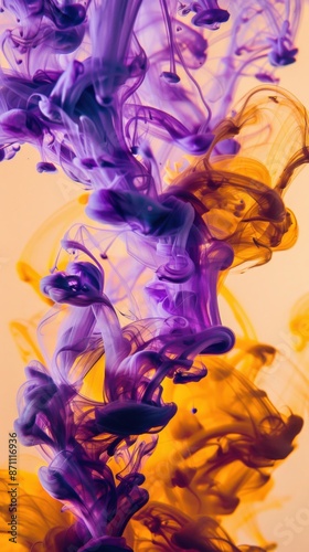 Fototapeta premium "Vibrant Swirls: Yellow and Purple Ink in Water"