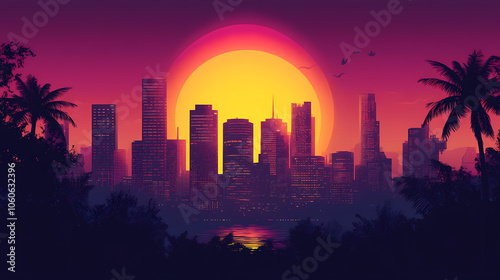 Fototapeta premium Vibrant Synthwave Cityscape: Neon Anime and Manga Art