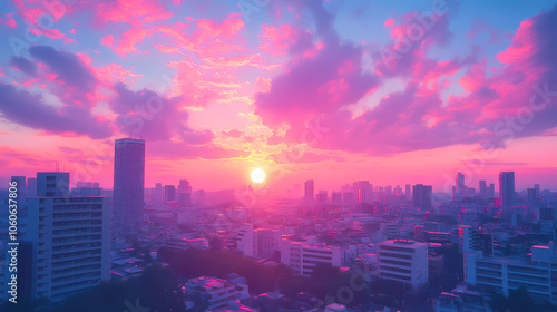 Obraz premium Vibrant Synthwave Cityscape: Neon Anime and Manga Art