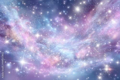 Fototapeta premium Vibrant teal and crimson hues dance across cosmic nebulae, speckled with the gentle twinkle of distant stars