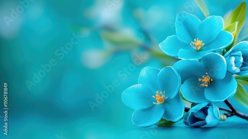 © Narongsag, Fototapeta premium Vibrant Teal Flowers Spring Bloom Nature Background Floral Wallpaper