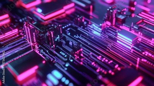 © AmStock, Obraz premium Vibrant Technology Circuit with Clean Lines and Colors