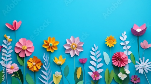 © Rauf, Obraz premium Vibrant textile pattern featuring geometric designs and colors on a blue background with floral accents