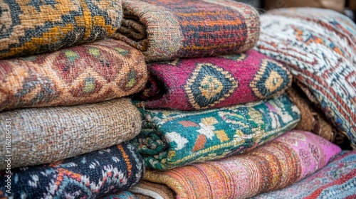 Fototapeta premium Vibrant Textiles in Market Stalls with Cultural Touches