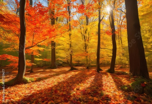 © Yaroslava, Obraz premium vibrant textures autumn foliage showcasing rich colors fall leaves captivating natural display, season, nature, bark, branches, scenery, landscape, forest